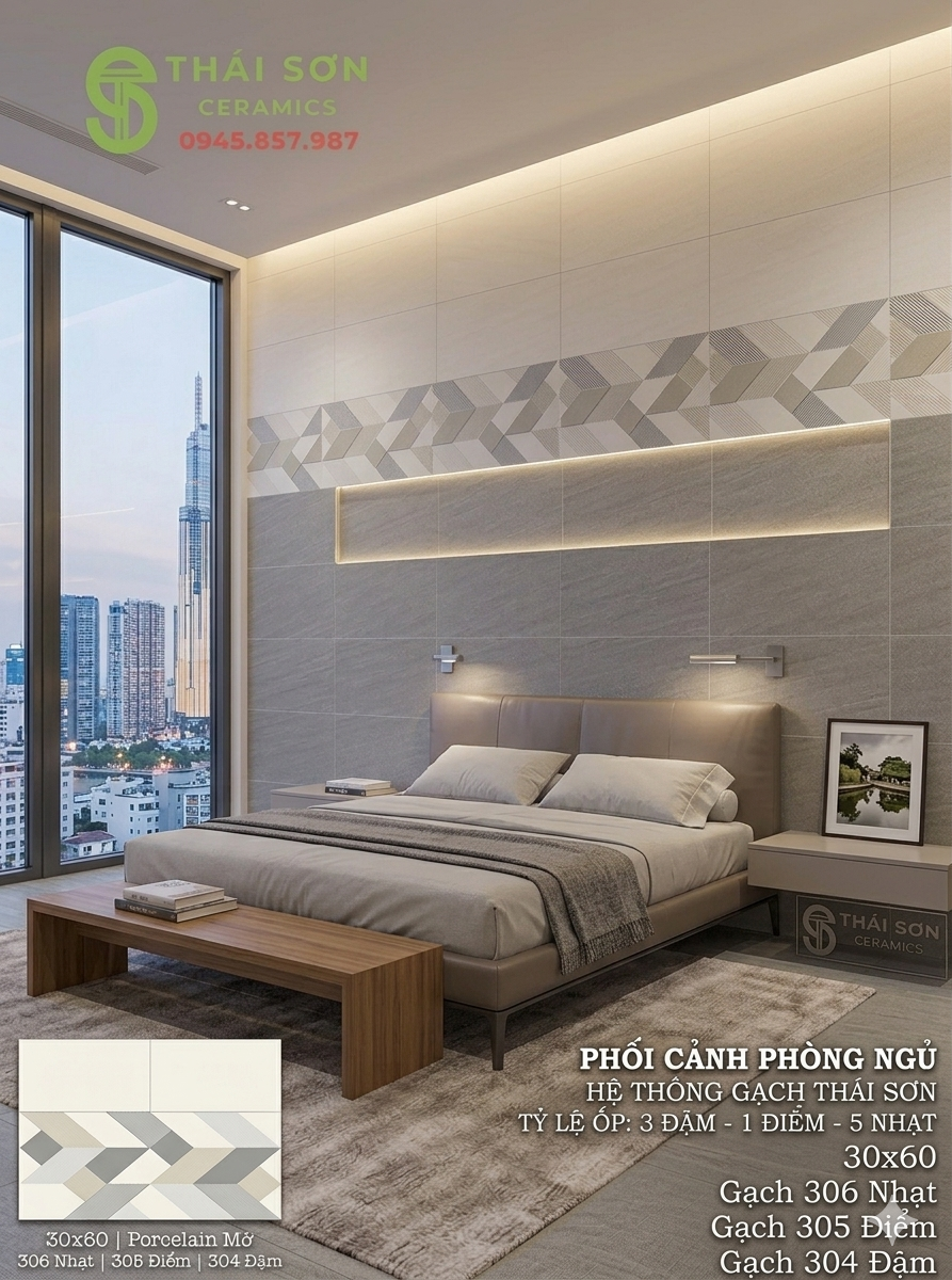 Phối cảnh 30x60 matt mờ tông xám bộ cho phòng ngủ